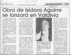 Obra de Isidora Aguirre se lanzará en Valdivia [artículo]. El Diario Austral (Valdivia). -- nov. 4, 1990, p. A7 retr. .