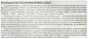 Profesor de Cochrane editó libro [artículo] El Diario de Aysen (Diario : Coyhaique, Chile)-- jul. 31, 2003, p.6. .