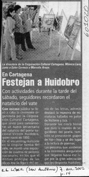 Festejan a Huidobro [artículo] El Líder (San Antonio) ene. 7, 2002, p. 14 .