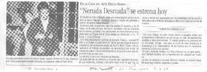 En la Casa del Arte Diego Rivera : "Neruda desnuda" se estrena hoy [artículo]. El Llanquihue (diario : Puerto Montt, Chile)-- jun. 21, 2005, p. A10. .