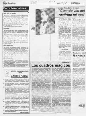 "Cuando veo actuando a modelos reafirmo mi opción por el teatro" [artículo]. El Llanquihue (diario : Puerto Montt, Chile)-- jul. 16, 1995, p. A27 y A28 retr. .