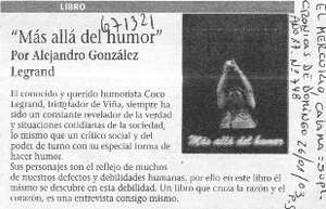 Más allá del humor". [artículo] El Mercurio (Diario : Calama, Chile)-- no. 748, año 17 (ene. 26, 2003) p. 5 (supl. "Crónicas de domingo"). il. .