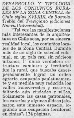 Desarrollo y tipología de los conjuntos rurales en la zona central. [artículo] El Mercurio (Diario : Santiago, Chile)-- ene. 11, 1981, p. E8. .
