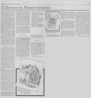 El barroco en hispanoamérica. [artículo] El Mercurio (Diario : Santiago, Chile)-- nov. 7, 1981, p. D15. .