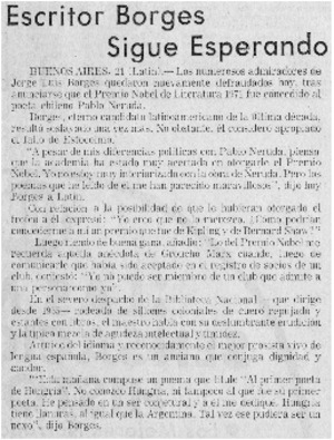 Escritor Borges sigue esperando. [artículo] El Mercurio (Diario : Santiago, Chile)-- oct. 22, 1971, p. 24. .