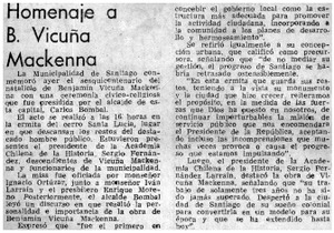 Homenaje a B. Vicuña Mackenna. [artículo] El Mercurio (Diario : Santiago, Chile)-- ago. 26, 1981, p. C7. .