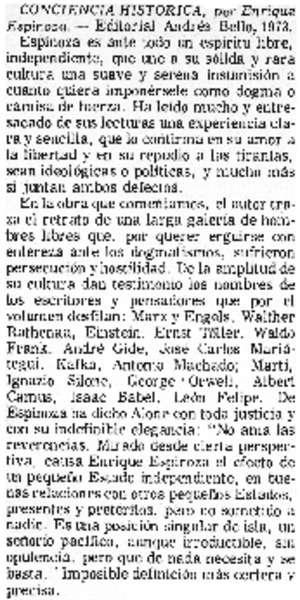 Conciencia histórica. [artículo] El Mercurio (Diario : Valparaíso, Chile)-- ago. 19, 1973, p. 15. .