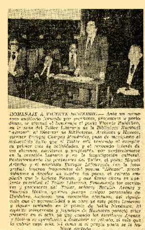 Homenaje a Vicente Huidobro. [artículo] El Mercurio (Santiago, Chile)-- sept. 7, 1977, p. 30. retr. .