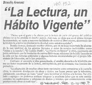La Lectura, un hábito vigente. [artículo] El Mercurio (Santiago, Chile)-- abr. 12, 1981. .