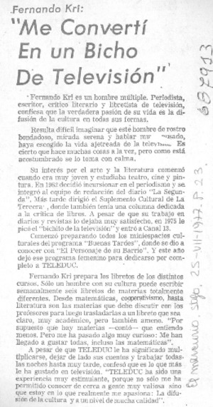 Me convertí en un bicho de televisión". [artículo]