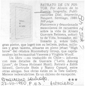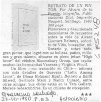 Retrato de un pintor. [artículo] El Mercurio (Santiago, Chile)-- jul. 27, 1980, p. E3. il. .