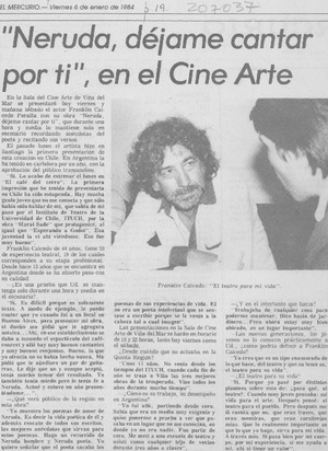 "Neruda, déjame cantar por ti" en el Cine Arte [artículo]. El Mercurio (Valparaíso). -- ene. 6, 1984, p. 19 retr. .