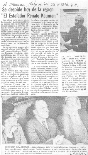 Se despide hoy de la región "El estafador Renato Kauman". [artículo] El Mercurio (Valparaíso, Chile)-- mayo 20, 1976, p. 26. .