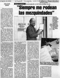 "Siempre me rodean las mezquindades" [artículo] La Nación (Santiago) ago. 30, 2000, p. 37 El Nortino (Iquique) ago. 31, 2000, p. 33 retr. .