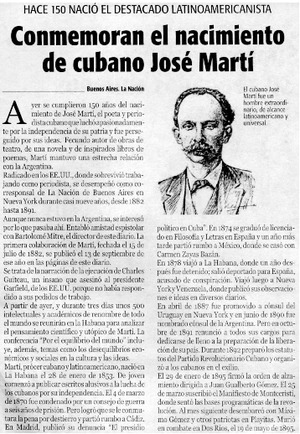Conmemoran el nacimiento de cubano José Martí. [artículo] El Nortino (Iquique, Chile)-- ene. 29, 2003, p. 13. retr. .
