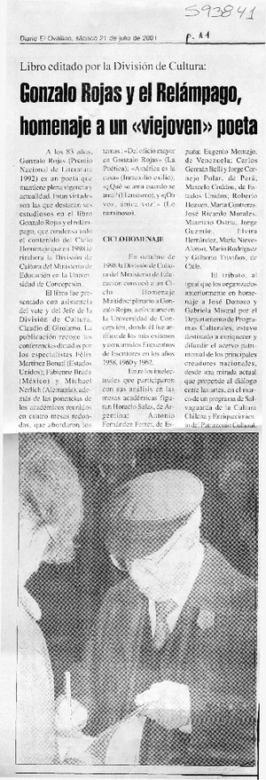 Gonzalo Rojas y el Relámpago homenaje a un "viejoven" poeta [artículo]. El Ovallino (diario : Ovalle, Chile)-- jul. 21, 2001, p. 11. .