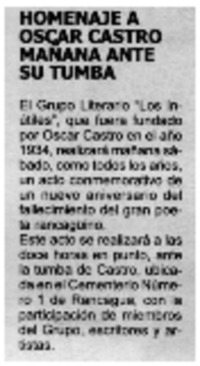 Homenaje a Oscar Castro mañana ante su tumba [artículo]