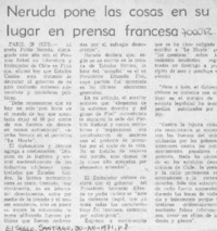 Neruda pone las cosas en su lugar en prensa francesa. [artículo]
