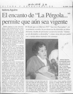 El encanto de "La pérgola --" permite que aún sea vigente [artículo]. El Sur (diario : Concepción, Chile)-- ago. 24, 1998, p. 16 retr. .