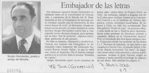 Embajador de letras. [artículo] El Sur (diario : Concepción, Chile)-- abr. 7, 2003, p. 1. retr. .