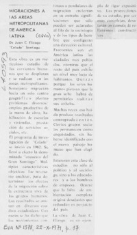 Migraciones a las áreas metropolitanas de América Latina. [artículo] Eva (Santiago, Chile)-- no. 1378 (oct. 22, 1971) p. 17. .