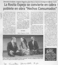 La Rosita Espejo se convierte en cabra poblete en obra "Hechos consumados" [artículo] La Cuarta oct. 24, 1999, p. 25 retr. .