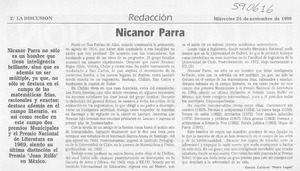 Nicanor Parra [artículo] La Discusión nov. 24, 1999, p. 2 .