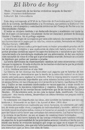 El desarrollo de las teorías evolutivas después de Darwin. [artículo] La Discusión (Chillán, Chile)-- jul. 9, 1982, p. 3. .