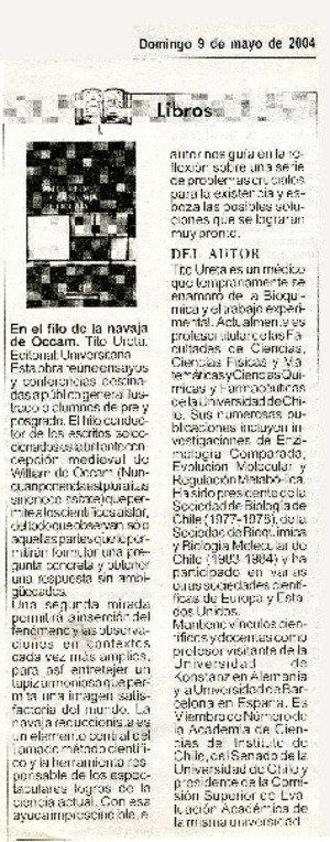 En el filo de la navaja de Occam. [artículo] La Discusión (Chillán, Chile)-- mayo 9, 2004, p. B6. il. .