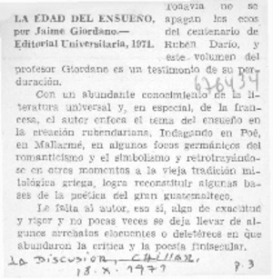 La Edad del ensueño. [artículo] La Discusión (Chillán, Chile)-- oct. 18, 1971, p. 3. .