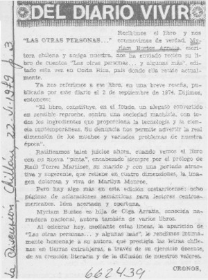 Las otras personas. [artículo] La Discusión (Chillán, Chile)-- jun. 22, 1979, p. 3. .