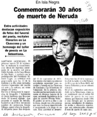 Conmemorarán 30 años de muerte de Neruda [artículo]