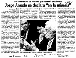 Jorge Amado se declara "en la miseria" [artículo]. La Epoca. -- ago. 16, 1995, p. B7 retr. .