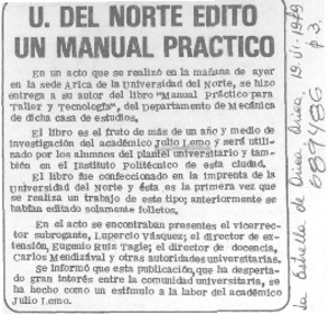 U. del norte editó un manual práctico. [artículo] La Estrella (Arica, Chile)-- jun. 19, 1979, p. 3. .