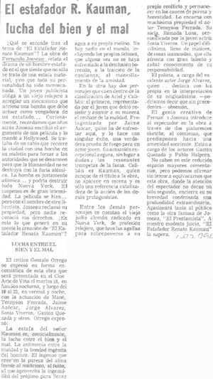 El Estafador R. Kauman, lucha del bien y el mal. [artículo] La Estrella (Valparaíso, Chile)-- mayo 17, 1976, p. 31. .