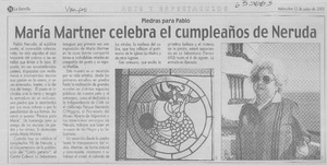 María Martner celebra el cumpleaños de Neruda. [artículo] La Estrella (Valparaíso, Chile)-- jul. 12, 2000, p. 26. .