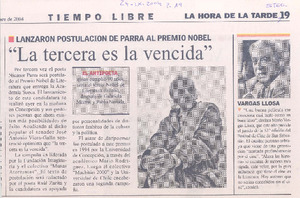 "La tercera es la vencida" [artículo] La Hora de la Tarde (Diario : Santiago, Chile)-- sept. 24, 2004, p. 19 .