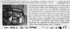 Luis Sepúlveda ahora escribe sobre rock [artículo] La Hora de la Tarde (Santiago) jun. 17, 2002, p. 13 retr. .