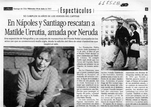 En Nápoles y Santiago rescatan a Matilde Urrutia, amada por Neruda [artículo] La Hora (Santiago) jul. 10, 2002, p. 15 retr. .