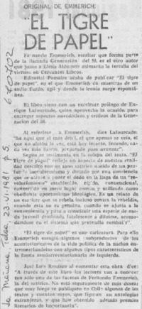 El tigre de papel". [artículo] La Mañana (Talca, Chile)-- jun. 23, 1981, p. 5. .