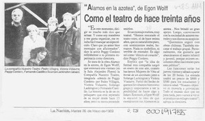 Como el teatro de hace treinta años [artículo]. La Nación. -- mayo 26, 1992, p. 28 retr. .