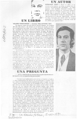 Un autor. [artículo] La Nación (Santiago, Chile)-- dic. 5, 1971, p. 14 (suplemento) retr. .