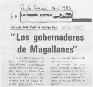 La Prensa Austral (Punta Arenas, Chile)-- ene. 14, 1983, p. 6.