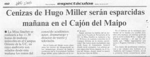 Cenizas de Hugo Miller serán esparcidas mañana en el Cajón del Maipo [artículo]. La Segunda. -- jul. 1, 1997, p. 40-41 .
