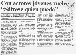 Con actores jóvenes vuelve "Sálvese quien pueda". [artículo] La Segunda (Diario : Santiago, Chile)-- nov. 4, 1983, p. 35. .