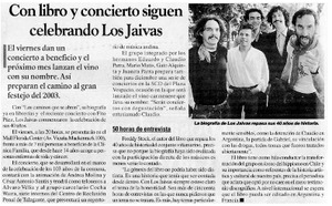 Con libro y concierto siguen celebrandoo Los Jaivas. [artículo] La Segunda (Diario : Santiago, Chile)-- nov. 6, 2002, p. 38. retr. .