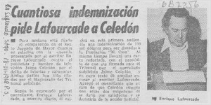 Cuantiosa indemnizaión pide Lafourcade a Celedón. [artículo]
