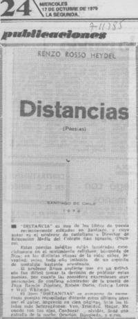 Distancias. [artículo] La Segunda (Diario : Santiago, Chile)-- oct. 17, 1979, p. 24. il. .