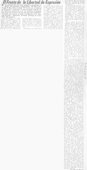 El Frente de la libertad de expresión. [artículo] La Segunda (Diario : Santiago, Chile)-- ene. 5, 1973, p. 6. .