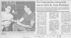En Concepción estrenarán nueva obra de Juan Radrigán. [artículo] La Segunda (Diario : Santiago, Chile)-- mar. 2, 1983, p. 24. retr. .